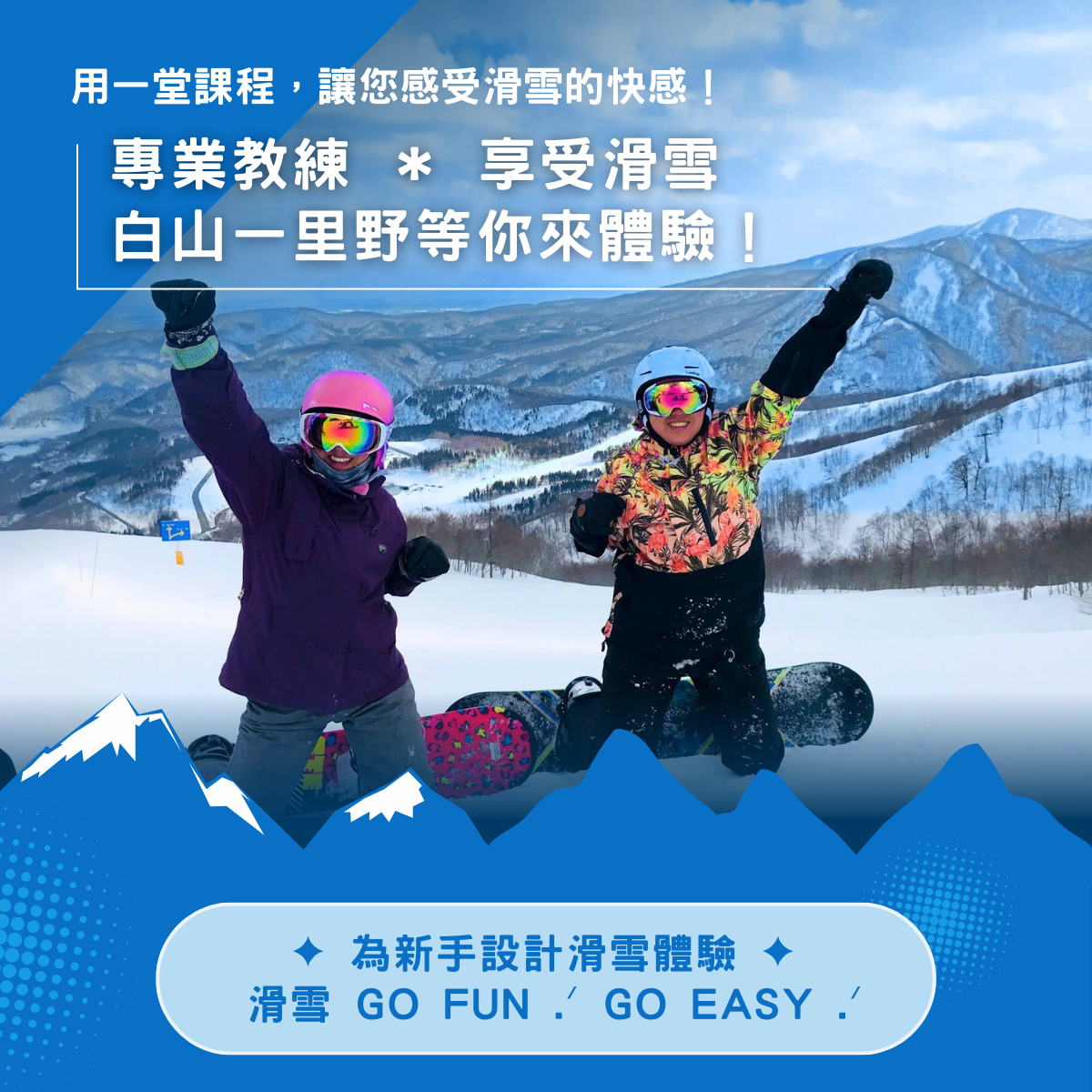 - 課程費用不包含滑雪器材裝備與纜車票,請於課程開始前自行完成租借與購票