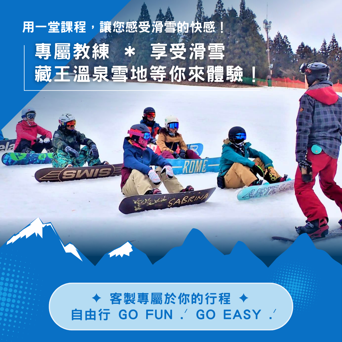 - 建議滑雪服裝與配件:保暖服裝、滑雪服裝保暖帽、風鏡、手套、長筒保暖襪、安全帽 (Snowboard 課程必備)、護膝、護掌、護臀