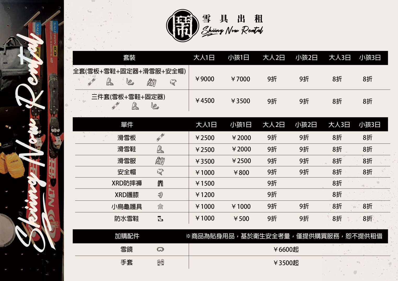 上課地點前方有雪具租借店,建議先提前預約,確保尺寸與數量